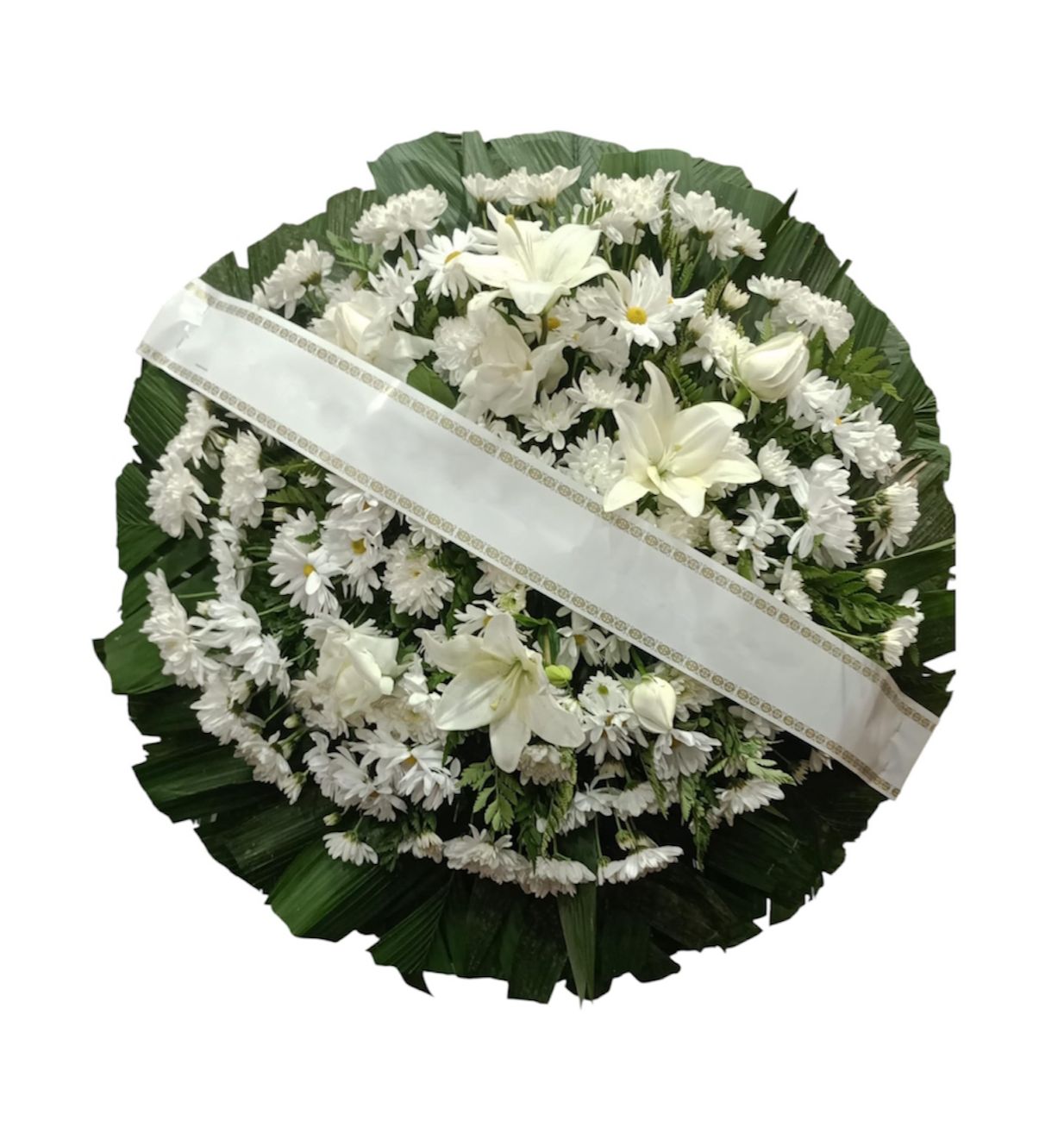 A Coroa de Flores Cachoeirinha, representa uma homenagem de forma singela e elegante. Composta de Crisantemos e Rosas, leva um toque de lirios ou anturios em sua montagem.